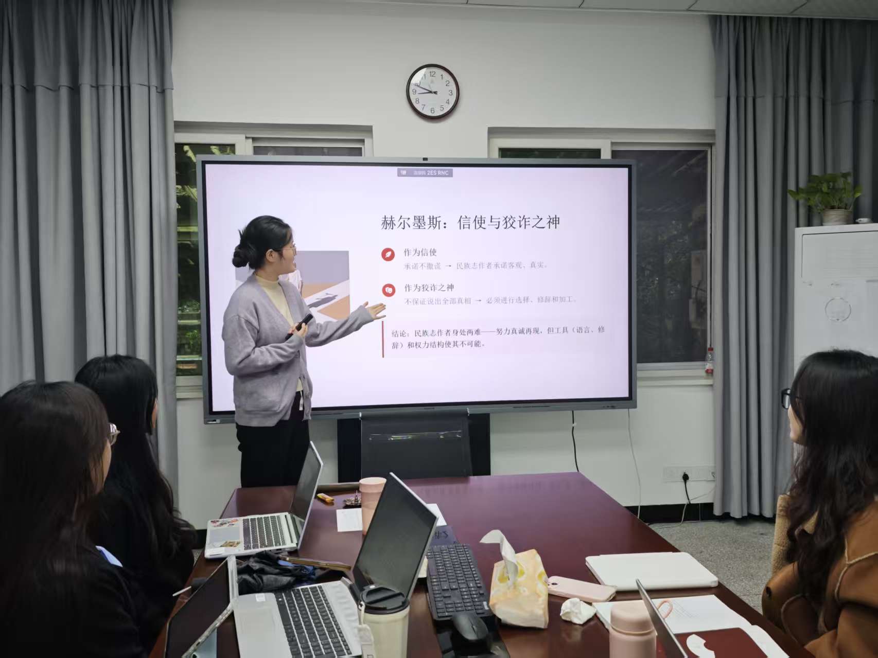 张宁同学则分享了克利福德关于民族志寓言性的核心观点与《尼萨》的多层次叙事结构,又以文本分析为视角,剖析了文化主体、性别建构到民族志关系的寓言逻辑,阐释了文本“多种声音”的运作机制,展现了对文本建构、权力关系与文化表述复杂性的深刻思考。