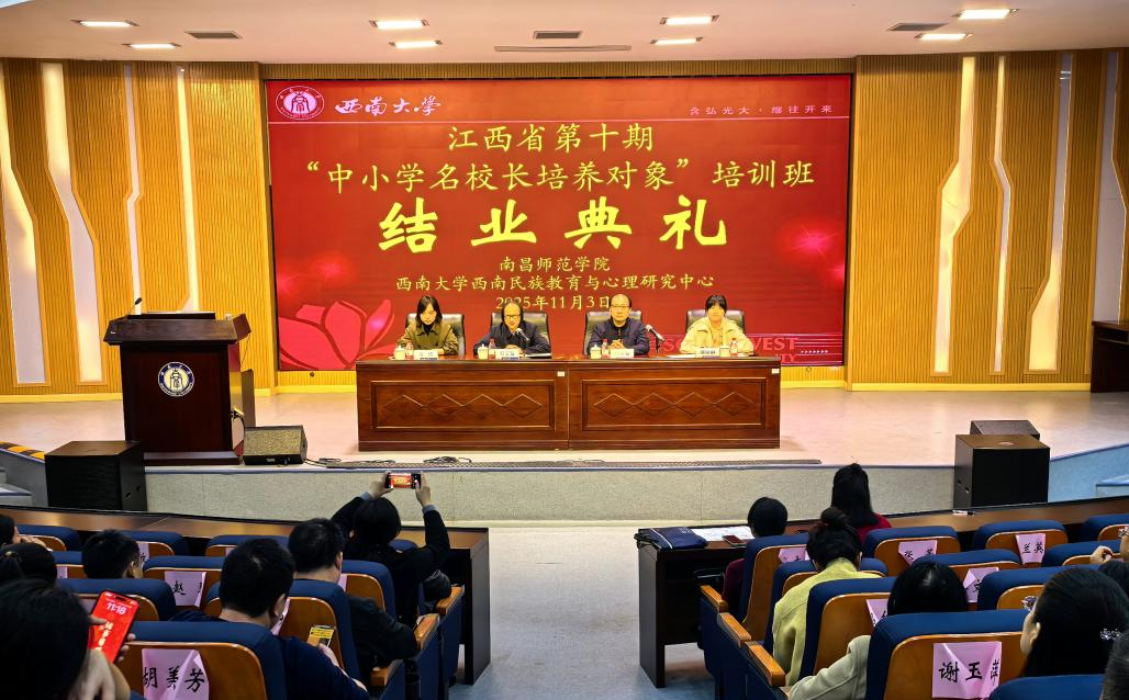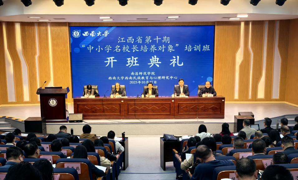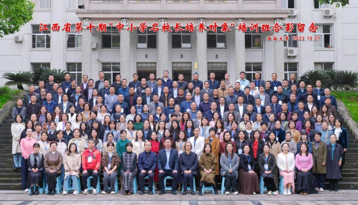 2025年10月26日至11月3日,由教育部人文社科重点研究基地西南大学西南民族教育与心理研究中心(以下简称“中心”)承办的江西省第十期名校长培养对象培训班圆满完成。来自江西全省11个地市的200名优秀校园长齐聚一堂,开启为期九天的深度研修。本次培训突出分阶段教学,针对不同学段设置了特幼、小学、初中、高中四个培训小班,旨在助力参训校园长深化理论认识、拓宽教育视野,汲取优秀的办学思想与管理智慧,搭建高水平交流协作平台。