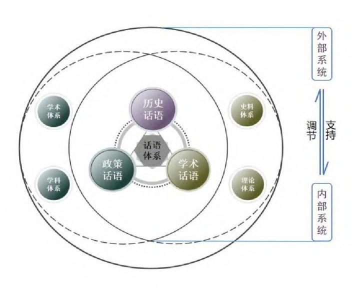 系统论目前已经成为我们认识事物、改进思维方式与工作方法的必然趋势[53],是一种用整体系统态度对待研究和处理的对象以及系统中要素的方法[54]。中华民族共同体话语建构须运用系统论的方法,注重话语内部及不同话语之间的整体性建设,使话语内部系统丰富并调节外部系统,外部系统支持和反馈内部系统,促进系统内部各要素之间动态发展,推动中华民族共同体自主话语体系建构,使话语在更大范围、更多领域发挥功用(见图2)。